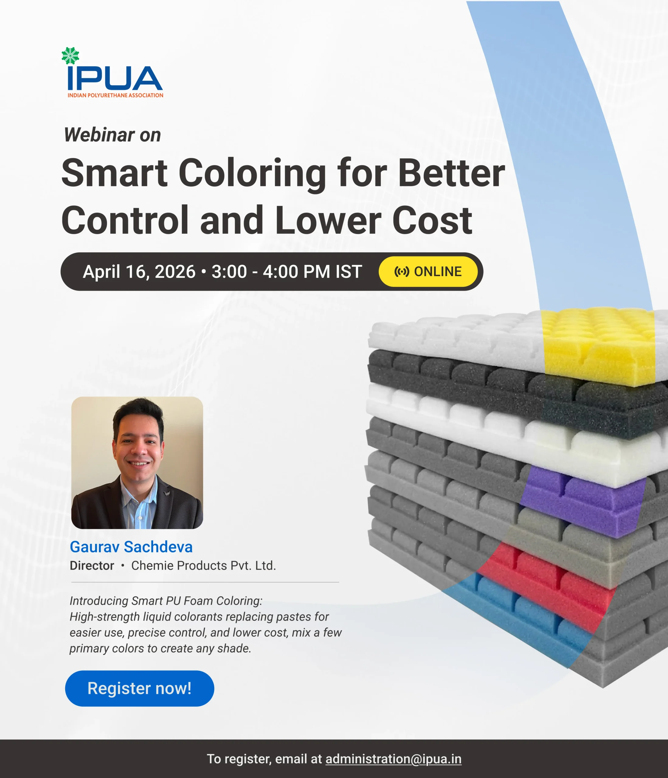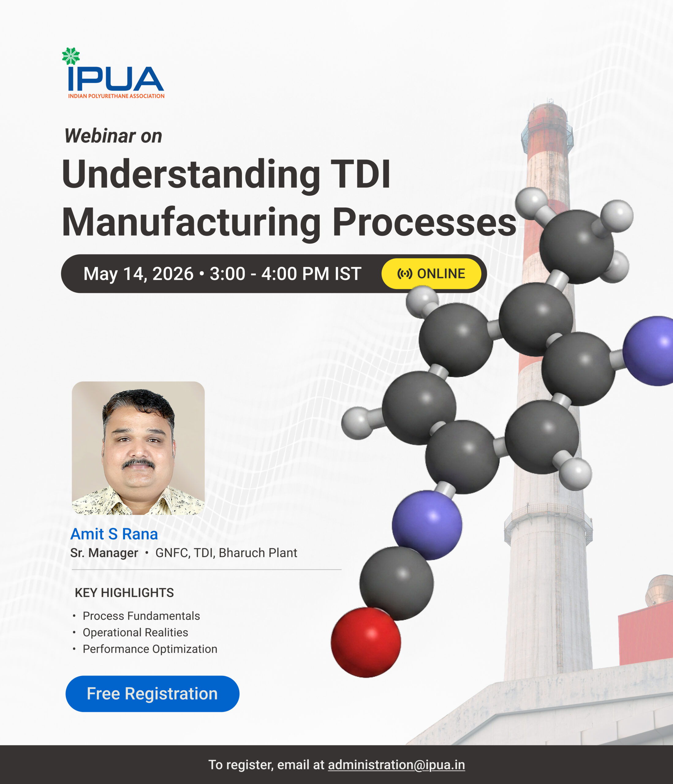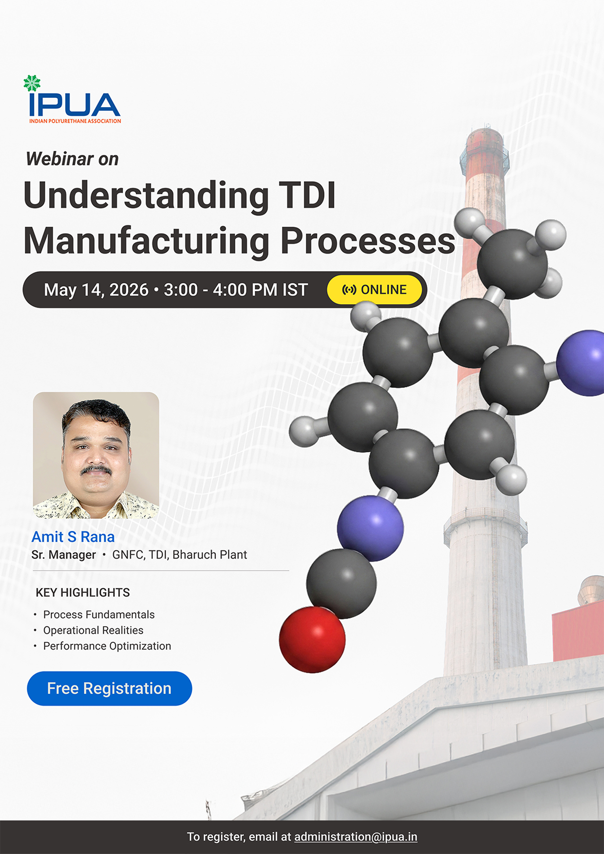 The Indian Polyurethane Association (IPUA) brings together manufacturers, suppliers, researchers, and industry leaders to shape the future of polyurethane in India. As a collaborative platform, we support sustainable growth, foster innovation, and encourage industry-wide dialogue. Through shared expertise and collective efforts, we contribute to advancements that prioritize efficiency, safety, and sustainability.