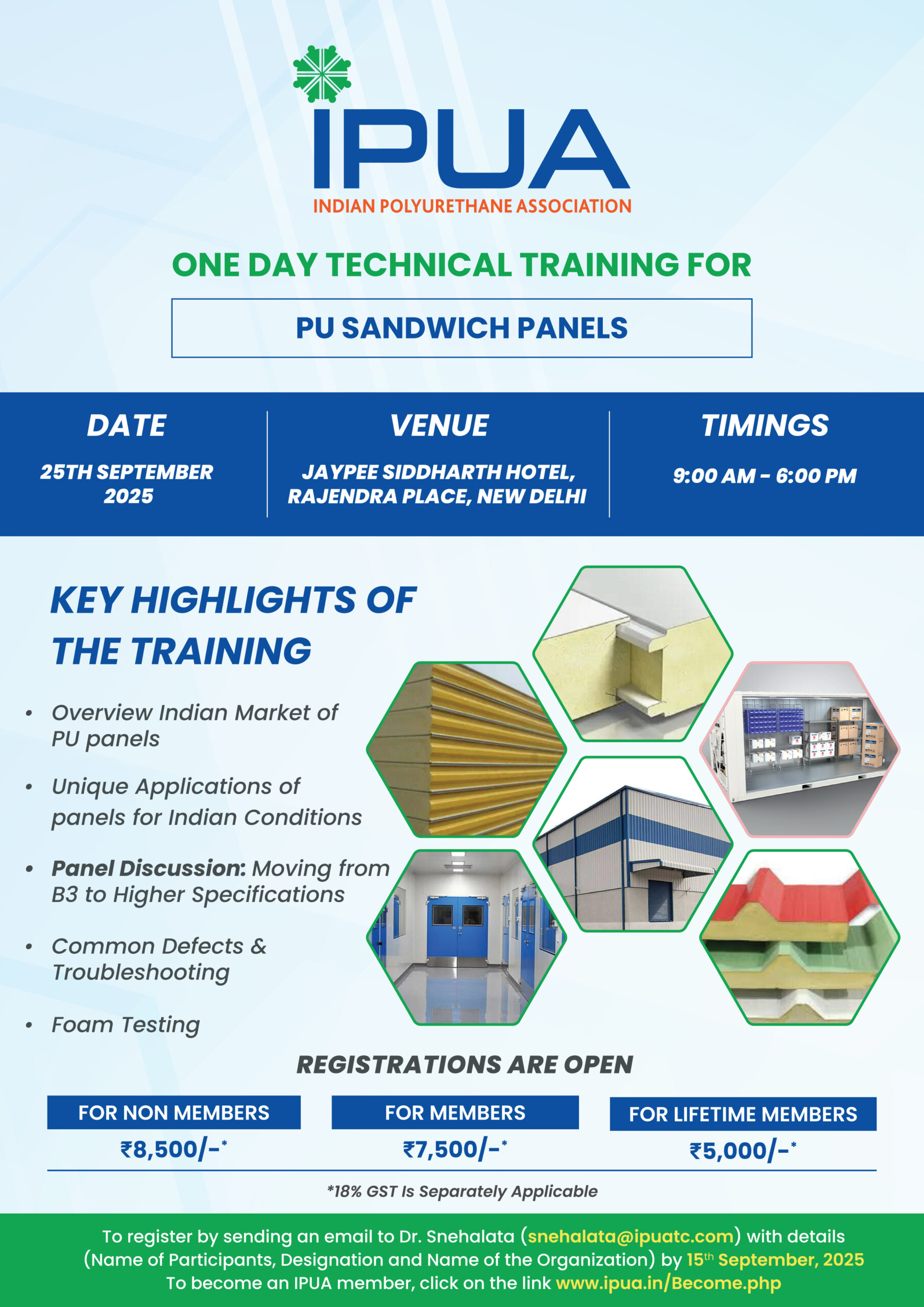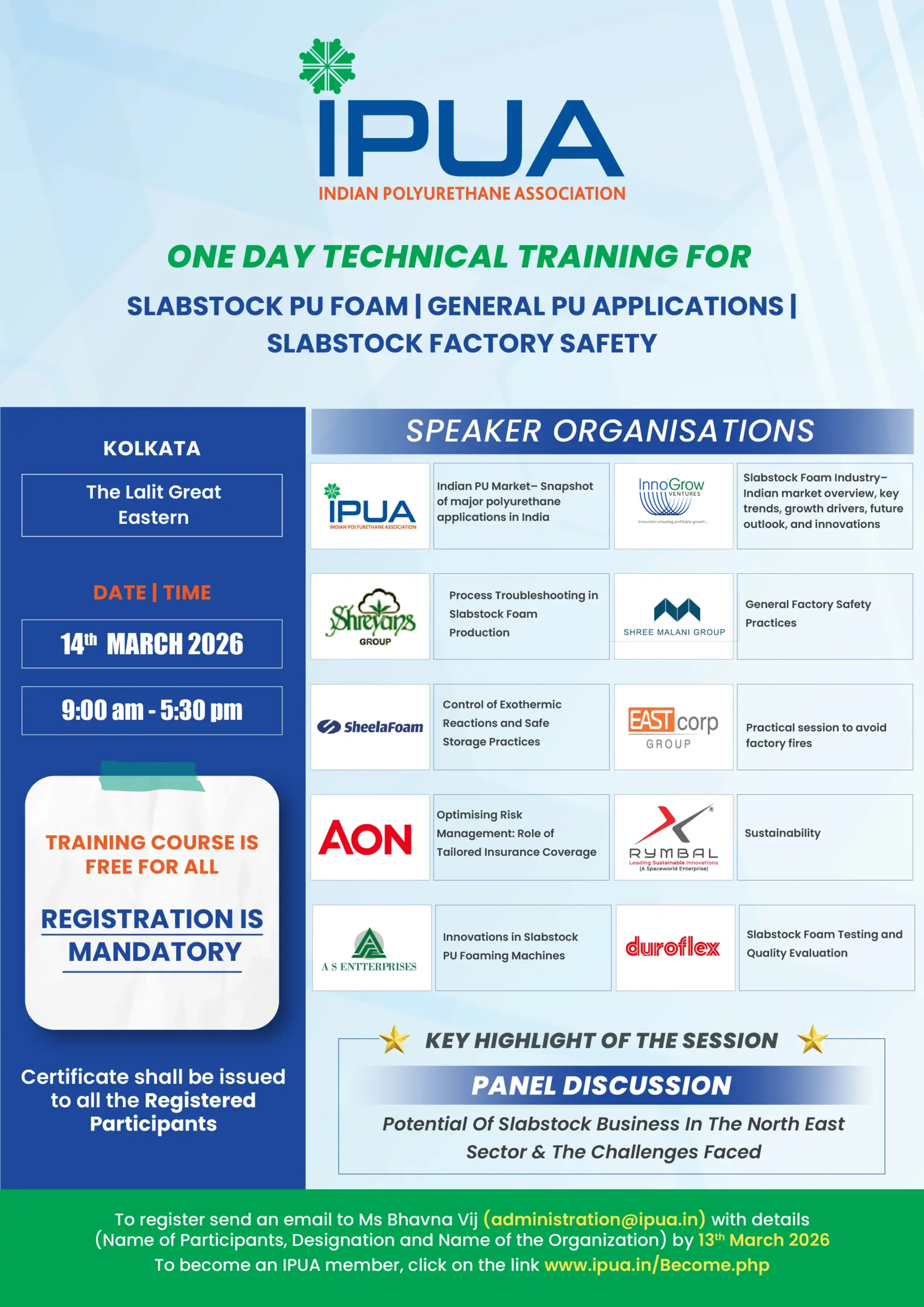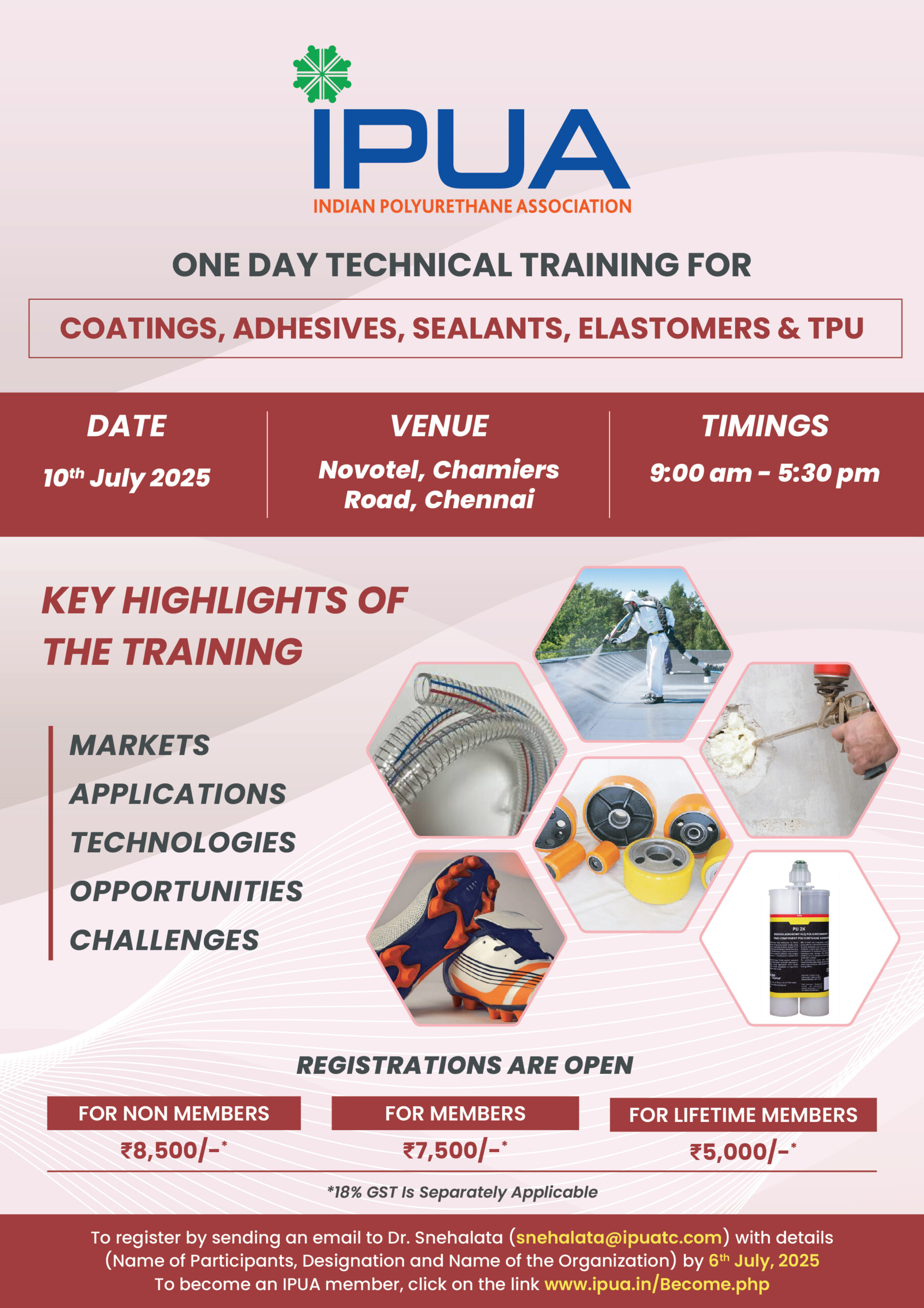 The Indian Polyurethane Association (IPUA) brings together manufacturers, suppliers, researchers, and industry leaders to shape the future of polyurethane in India. As a collaborative platform, we support sustainable growth, foster innovation, and encourage industry-wide dialogue. Through shared expertise and collective efforts, we contribute to advancements that prioritize efficiency, safety, and sustainability.