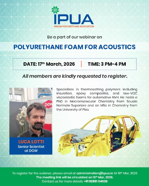 The INDIAN POLYURETHANE ASSOCIATION (IPUA) was founded in May 1992 by a modest group of entrepreneurs and Raw Material Suppliers to facilitate interaction and accelerate growth in the Indian Polyurethane Industry.