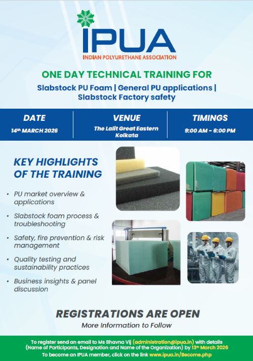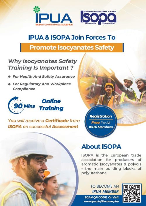 The INDIAN POLYURETHANE ASSOCIATION (IPUA) was founded in May 1992 by a modest group of entrepreneurs and Raw Material Suppliers to facilitate interaction and accelerate growth in the Indian Polyurethane Industry.